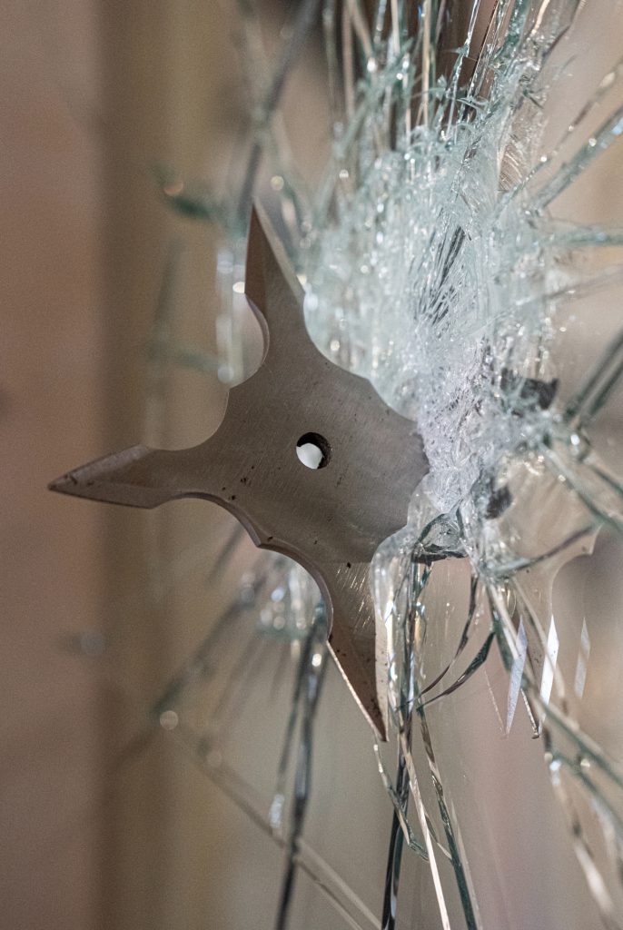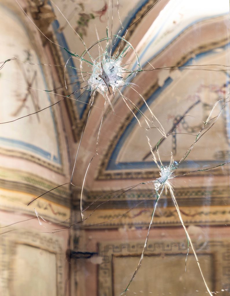 mirror, blade, surgical steel, 120x80x15cm, site-specific installation at Chiesa di Santa Chiara, Monte San Savino, Toscana, Italy, Iv Toshain 2026.